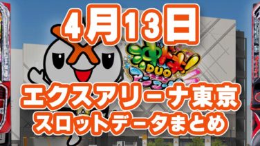 データまとめ 【3台並び?】4月13日『エクスアリーナ東京』のスロットデータまとめ! 法則性はこれだ!【3の日】
