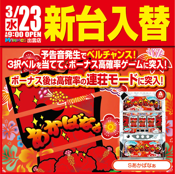 が3/23に導入するみたいでー三択ベル➡ボナ高確➡連荘MODE