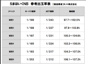 ボーナス確率が、設定1~6で1/189~1/252。
