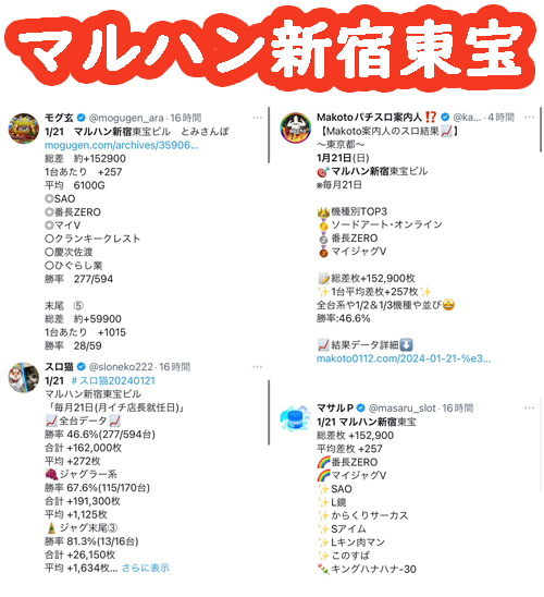 とみさんぽや特定日であったマルハン新宿も結果を残しました。