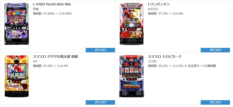 スロットは計4機種が登場