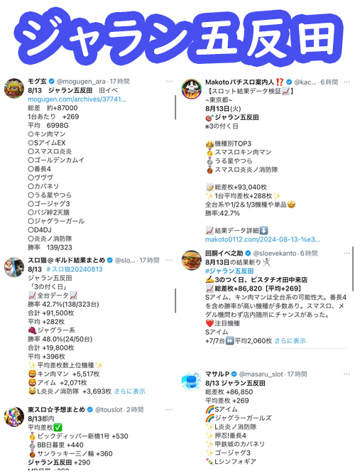 観測範囲内のトップは9の日常連でもあるジャラン五反田。