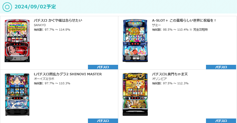 スロットは計4機種が登場