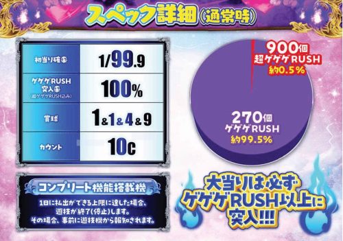 1/99.9の初当り後はRUSH以上に突入となる100突仕様。