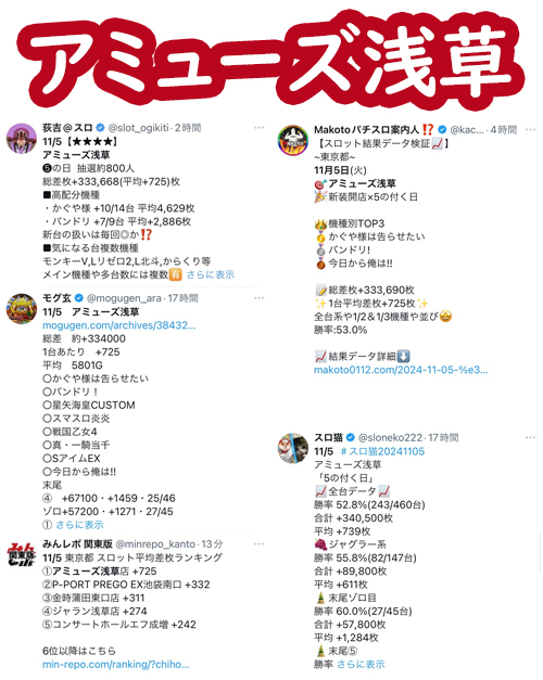 観測範囲内のトップは新台の活躍も見られたアミューズ浅草。