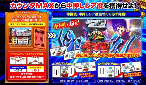 特定の小役を引くと貯まるカウンタで、最大規定回数は5回。