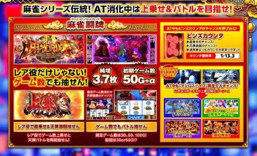 本機のAT『麻雀闘牌(マージャンバトルロード)』は、