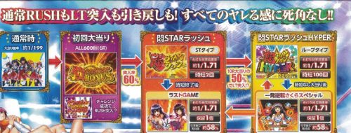 60%で下位RUSHに突入し、LTを狙いつつ出玉を増やすというフローに。