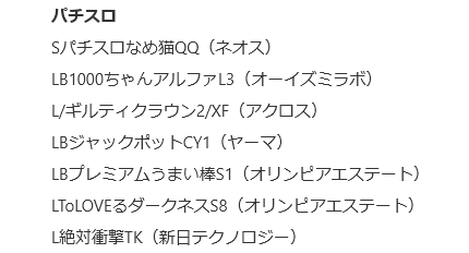 パチンコ機種は以下のように。