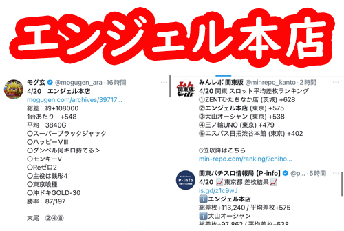 観測範囲内のトップは素晴らしい差枚を見せてくれたエンジェル本店。