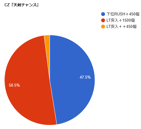 LT突入の条件は、CZ『天剣チャンス』中に当たりの1/2を引くこと。