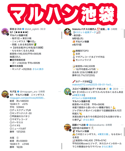 次いで特定日のマルハン池袋とエクサファースト。