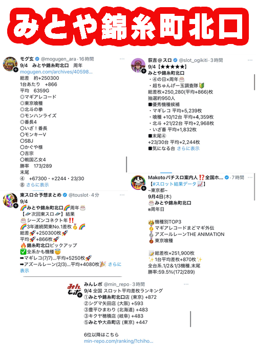 観測範囲内のトップは周年日かつ系列でも活躍したみとや錦糸町北口。