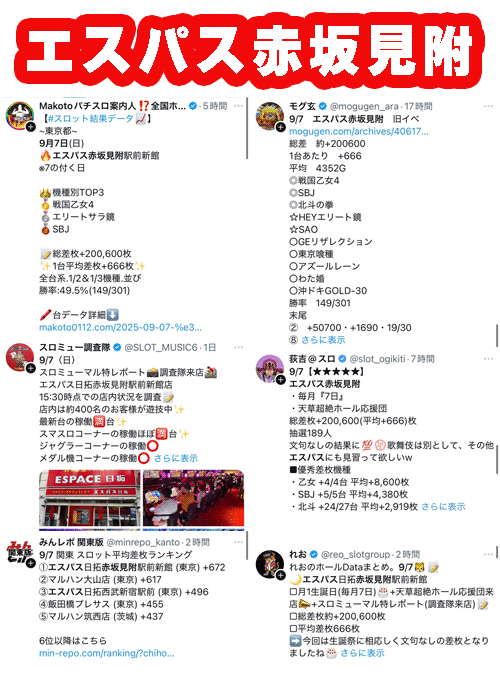 観測範囲内のトップは特定日かつ日曜日のエスパス赤坂見附。