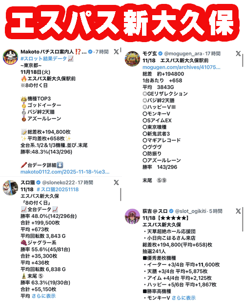 観測範囲内のトップは特定日で圧倒的スコアのエスパス新大久保。