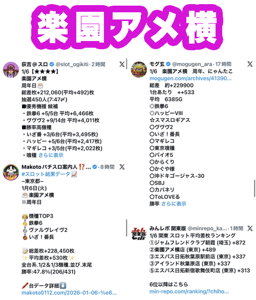 次いで周年日で結果を出した楽園アメ横に、