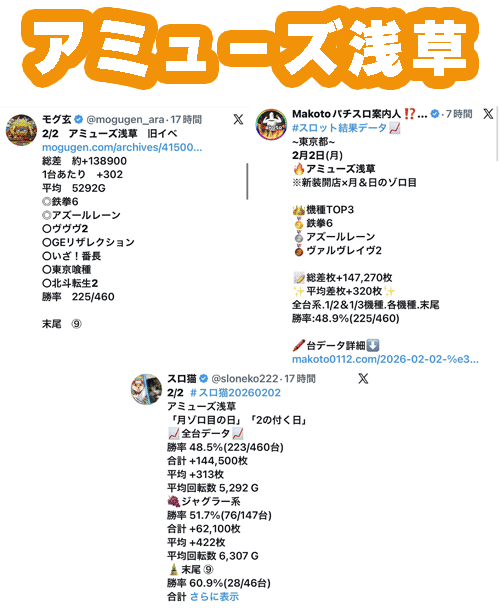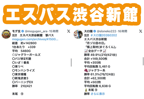 次いでエスパス渋谷新館やアミューズ浅草などが月ゾロで結果を出し、