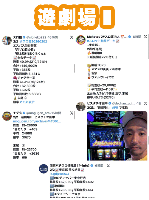 観測範囲内のトップは数字を冠し来店もあった遊劇場Ⅱ。