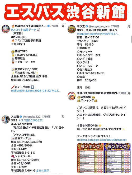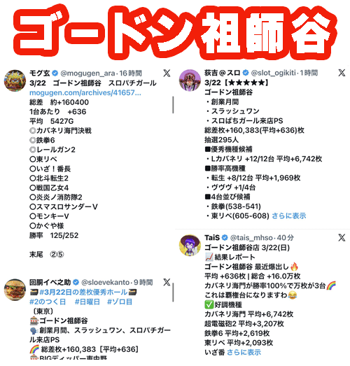 観測範囲内のトップはスロパチに創業月間の重なったゴードン祖師谷。