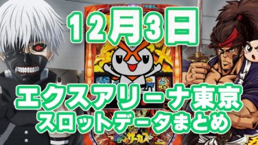 【3台並び?】12月3日『エクスアリーナ東京』のスロットデータまとめ! 法則性はこれだ!【3の日】